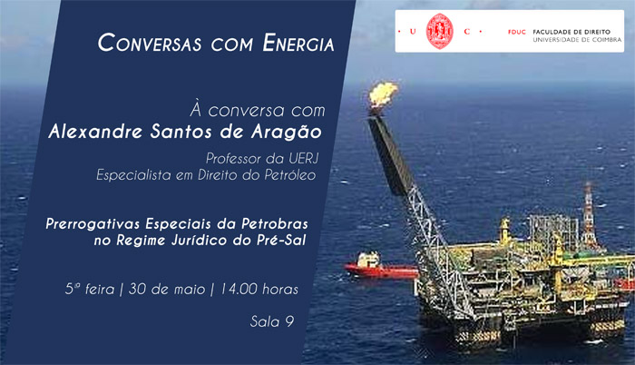 A aula aberta da cadeira de direito da energia resultou de uma visita surpresa que o Doutor Alexandre Santos de Aragão nos faz e da sua disponibilidade para partilhar connosco algumas reflexões sobre o actual modelo orgânico-funcional adoptado pelo Brasil para a exploração petrolífera na Região do Pré-Sal. Foi uma sessão interessante e participada, na qual os estudantes de mestrado e outros participantes tiveram oportunidade de discutir, em tom informal, as aparentes debilidades jurídicas deste novo regime jurídico brasileiro.